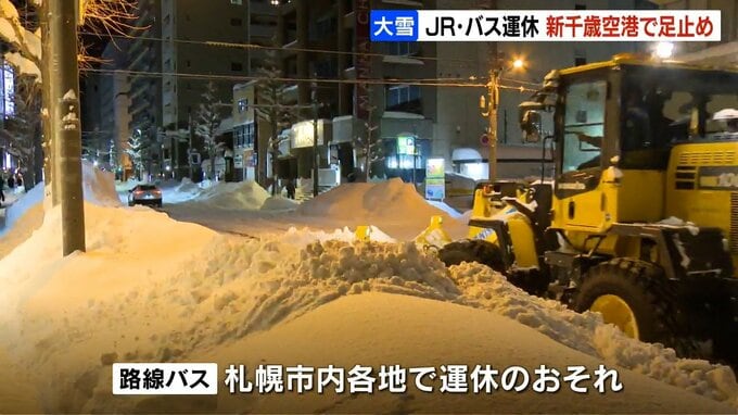 JR北海道は札幌圏の列車について少なくとも26日午前10時ごろまでは運転を再開できない見込みと発表しました。札幌では25日午後7時までの24時間で1月の観測記録を更新する54センチの雪が降り、夜も除雪作業が続いています。