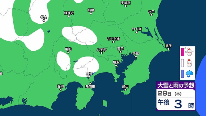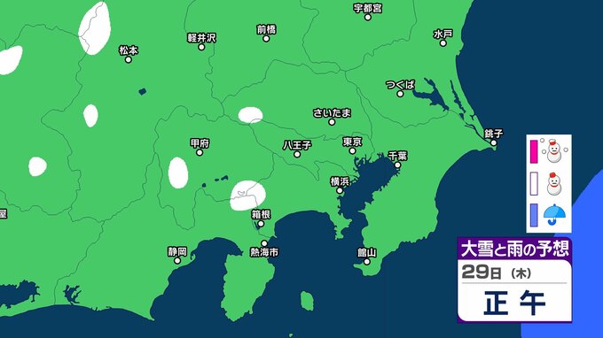 29⽇から30⽇は、強い寒気が南下するため北⽇本から⻄⽇本にかけての⽇本海側を中⼼に⼤雪となるおそれがあり、寒気の程度によっては警報級の⼤雪となる可能性があるということです。