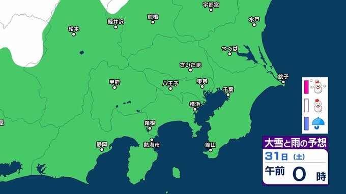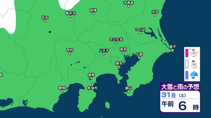 【東京の雪予想】東京・横浜・千葉など29日(木)首都圏の広い範囲で雪雲が… 26日(月)~31日(土)東京・横浜・千葉・埼玉・つくば 雪雨シミュレーション【気象庁 26日現在】 RSK山陽放送 2026年1月26日(月) 08:03 国内 天気 31日(土) ▶26日(月)~31日(土)雪雨シミュレーション 予想にはブレ幅があるため、今後の気象情報をこまめに確認してください。