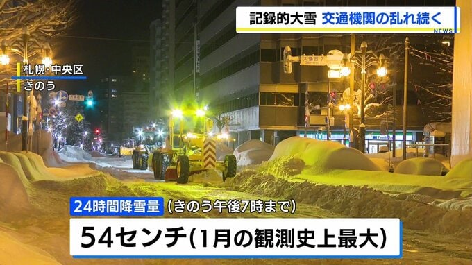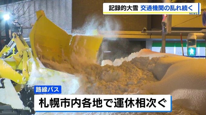 また、1月の観測記録を更新する54センチの雪が降った札幌では、市内の広い範囲で、路線バスの運休も相次いでいます。