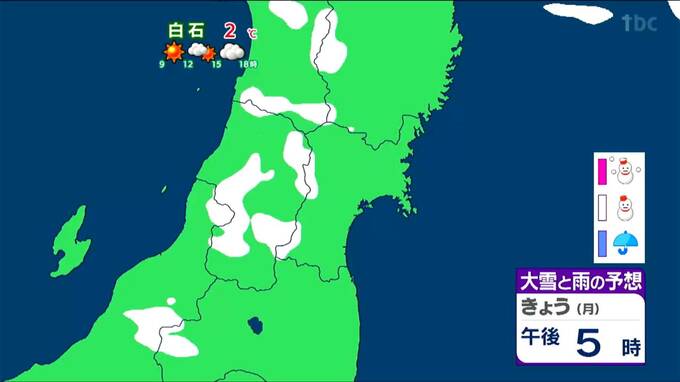 東北地方は、午前中を中心に晴れ間が出ますが、午後は雲が広がりやすくなります。山沿いでは一部で雪が降るところもありそうです。