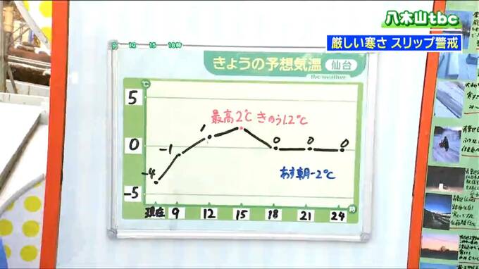 仙台の最高気温は2℃で、25日と同じくらいの見込みです。ただし、26日夜から雲が増えてくるため、冷え込み自体はそれほど強まることはないでしょう。