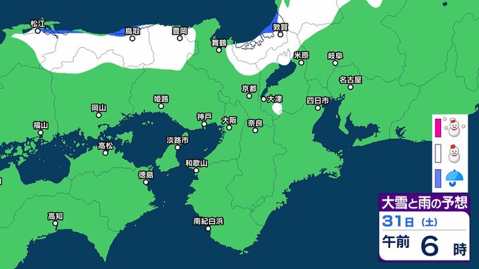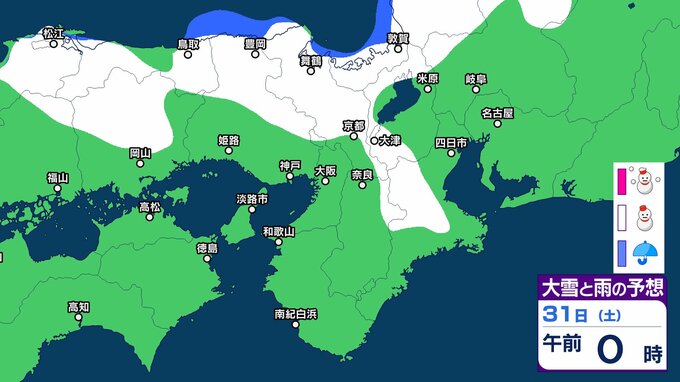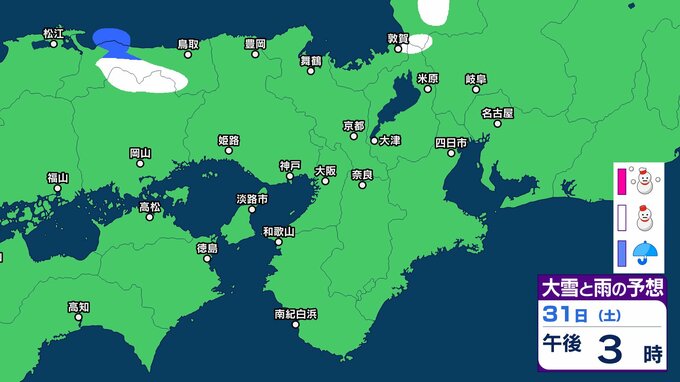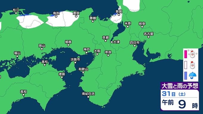 【関西の雪 どうなる?】週後半に冬型の気圧配置が強まる見込み→広い範囲で雪か? 26日(月)~31日(土)雪雨シミュレーション 大阪・京都・神戸・滋賀・奈良・和歌山の天気予報【気象庁 26日現在】 RSK山陽放送 2026年1月26日(月) 11:24 国内 天気 31日(土) ▶26日(月)~31日(土)近畿地方の雪雨シミュレーション ▶大津・京都・大阪・神戸・奈良・和歌山の16日間天気予報