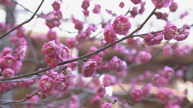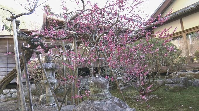 紅色の花を咲かせ…一足早く春を告げる 樹齢約300年の「八重紅梅」が見頃 三重・紀北町 To view this video please enable JavaScript, and consider upgrading to a web browser that supports HTML5 video CBCテレビ 2026年1月26日(月) 11:38 国内 三重県紀北町で、樹齢約300年の八重紅梅が見頃を迎えています。 鮮やかに紅色の花を咲かせている八重紅梅。三重県紀北町の長楽寺では、城腰紅梅(じょうようこうばい)と呼ばれる早咲きの八重紅梅が見頃を迎えています。
