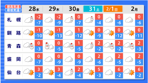 平均気温は低く降雪量はほぼ平年並か...東北地方の向こう1か月(1/24~2/23)の天候の見通しは? 平均気温・降水量・日照時間・降雪量は? 気象庁 テレビユー山形 2026年1月26日(月) 11:15 国内 ■東北・全国の天気(画像) 画像はTBS NEWS DIG Powered by JNNより 画像ありの記事を最初から https://newsdig.tbs.co.jp/articles/-/2423865?display=1