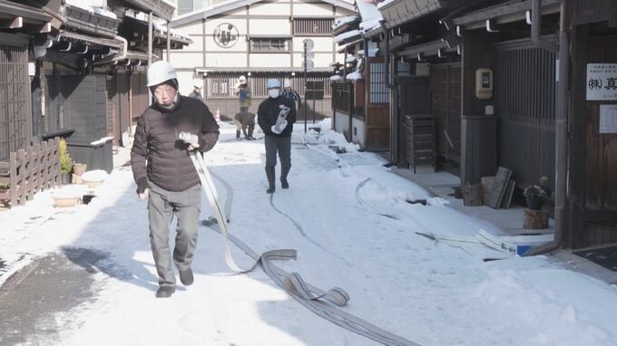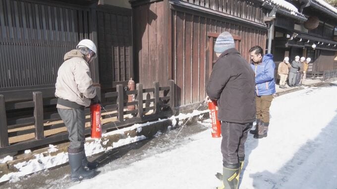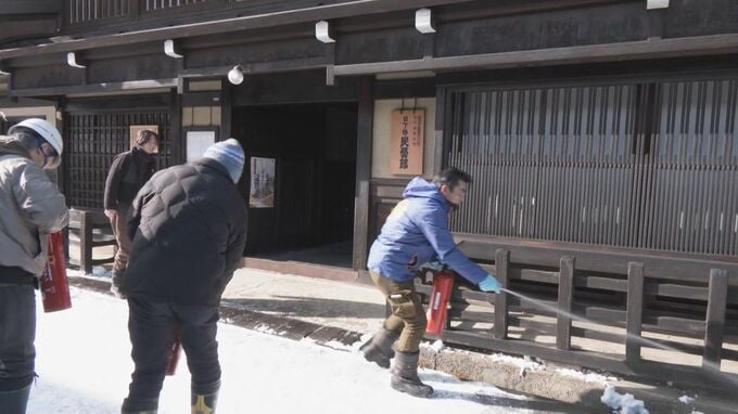 文化財防火デーに国の重要文化財「日下部民藝館」で消防訓練 約30人が避難誘導や建物から貴重品を持ち出すなど手順確認 岐阜・高山市