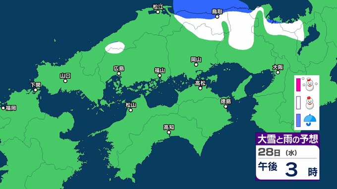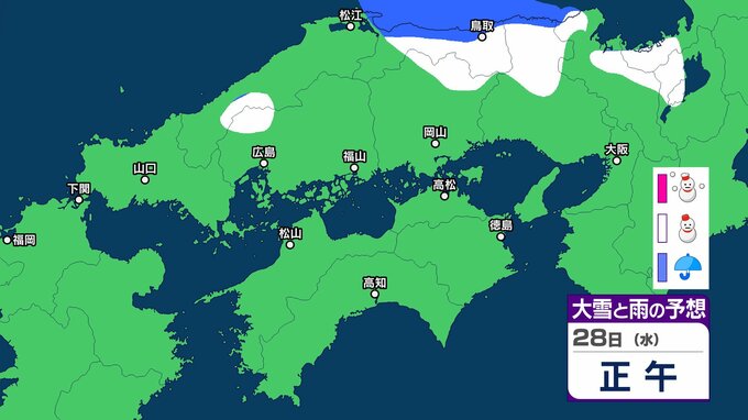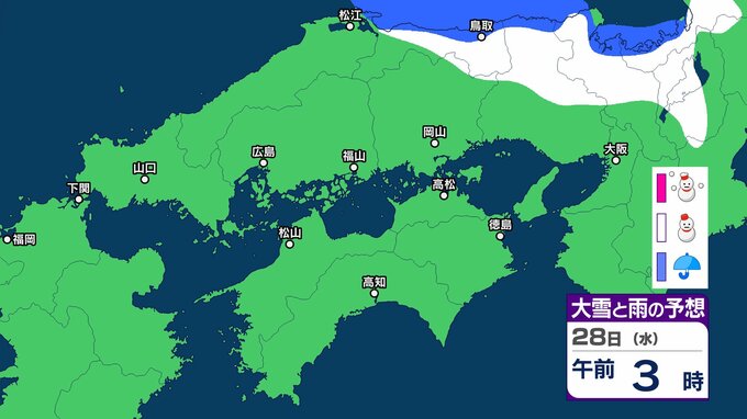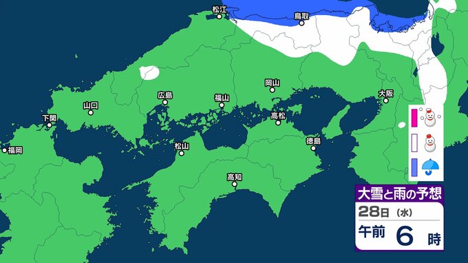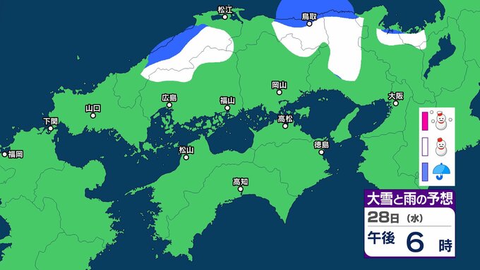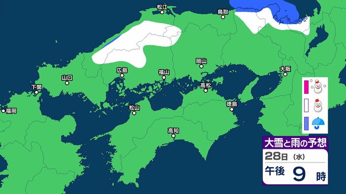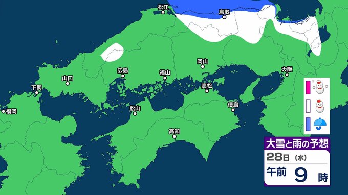 【中国・四国の雪 どうなる?】29日(木)頃から冬型の気圧配置が強まる見込み、中国地方の広い範囲で降雪か?広島・岡山・山口・鳥取・島根・香川・愛媛・高知・徳島26日(月)~31日(土)雪雨シミュレーション【気象庁 26日現在】 RSK山陽放送 2026年1月26日(月) 11:47 国内 天気 28日(水) ▶26日(月)~31日(土)中国・四国地方の雪雨シミュレーション