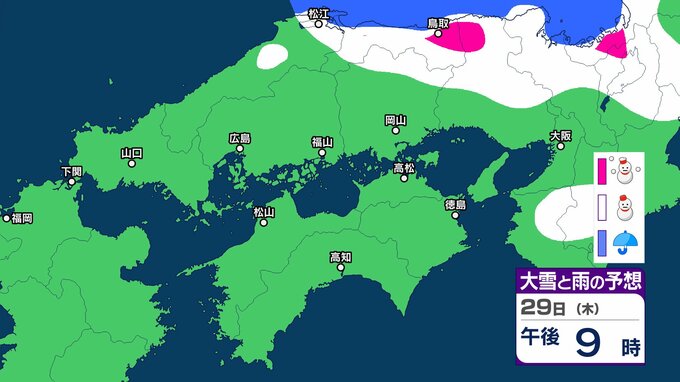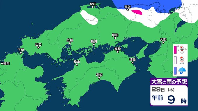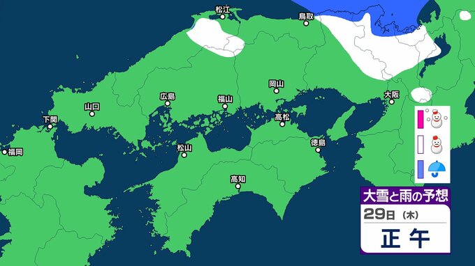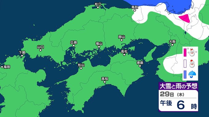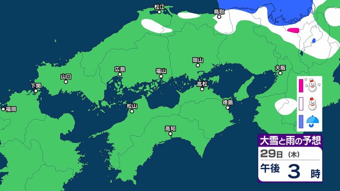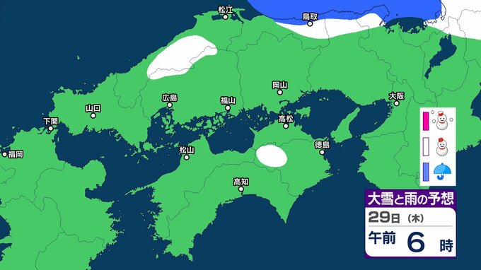 【中国・四国の雪 どうなる?】29日(木)頃から冬型の気圧配置が強まる見込み、中国地方の広い範囲で降雪か?広島・岡山・山口・鳥取・島根・香川・愛媛・高知・徳島26日(月)~31日(土)雪雨シミュレーション【気象庁 26日現在】 RSK山陽放送 2026年1月26日(月) 11:47 国内 天気 29日(木) ▶26日(月)~31日(土)中国・四国地方の雪雨シミュレーション