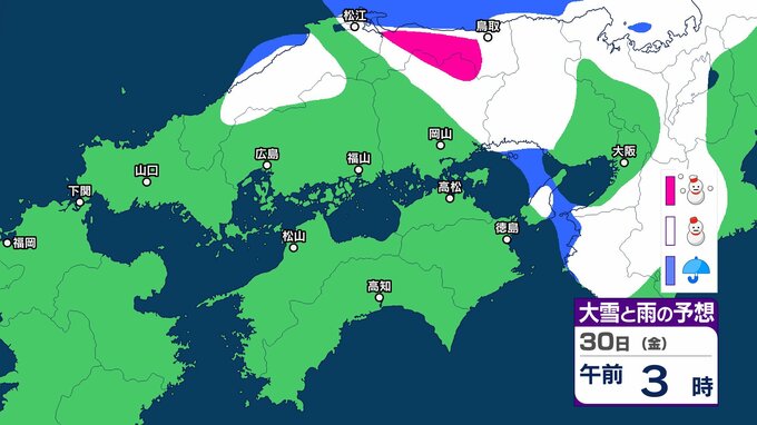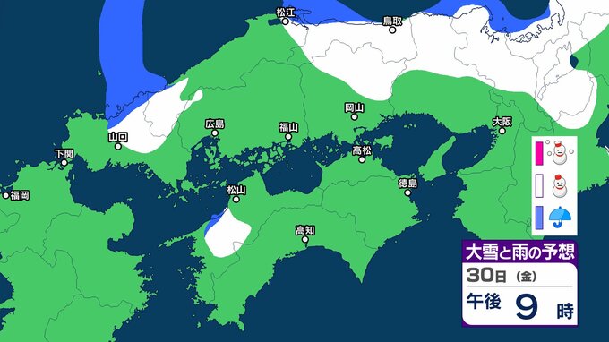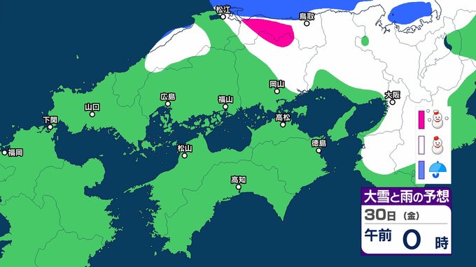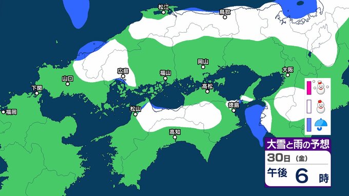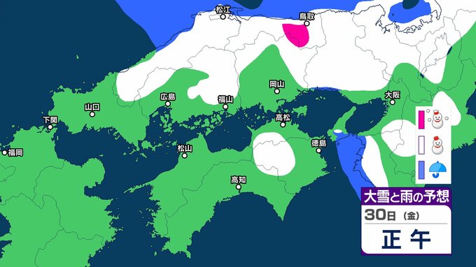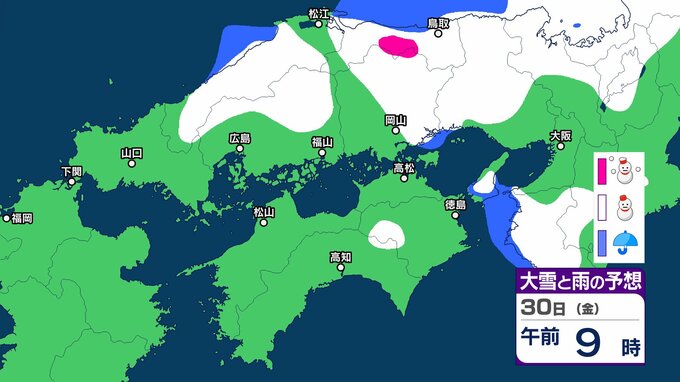 【中国・四国の雪 どうなる?】29日(木)頃から冬型の気圧配置が強まる見込み、中国地方の広い範囲で降雪か?広島・岡山・山口・鳥取・島根・香川・愛媛・高知・徳島26日(月)~31日(土)雪雨シミュレーション【気象庁 26日現在】 RSK山陽放送 2026年1月26日(月) 11:47 国内 天気 30日(金) ▶26日(月)~31日(土)中国・四国地方の雪雨シミュレーション