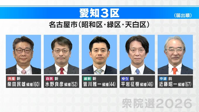 愛知3区:名古屋市(昭和区・緑区・天白区)