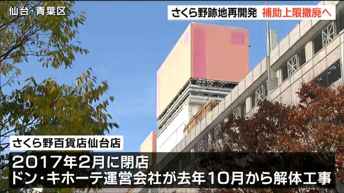 JR仙台駅西口のさくら野百貨店仙台店の跡地について、仙台市は再開発の支援のため補助金の上限を撤廃する方針を固め、部分的な事業参画についても検討を始めました。