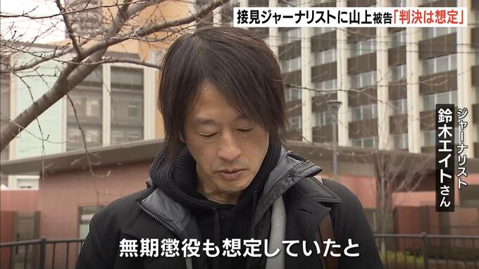 安倍晋三元総理の銃撃事件で無期懲役の判決を受けた山上徹也被告がジャーナリストとの接見に応じ、「判決は想定していた」などと話しました。 2022年に奈良市で演説中の安倍元総理(当時67)を銃撃し、殺害…