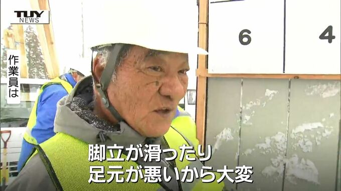 作業員「寒くて大変。脚立が滑ったり。足元が悪いから大変」