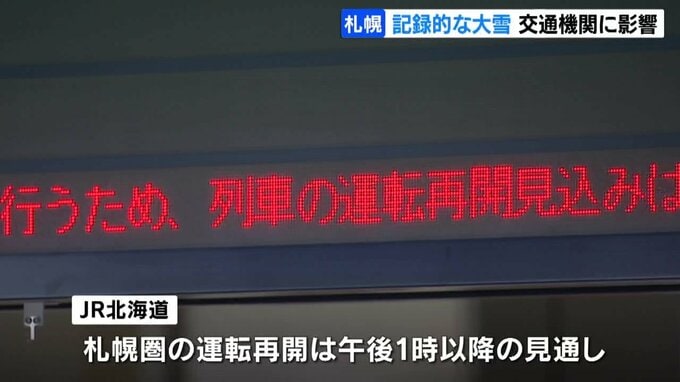 JR北海道は、札幌圏の列車の運転再開は午後1時以降になるとしていて、影響は今後も続く見通しです。