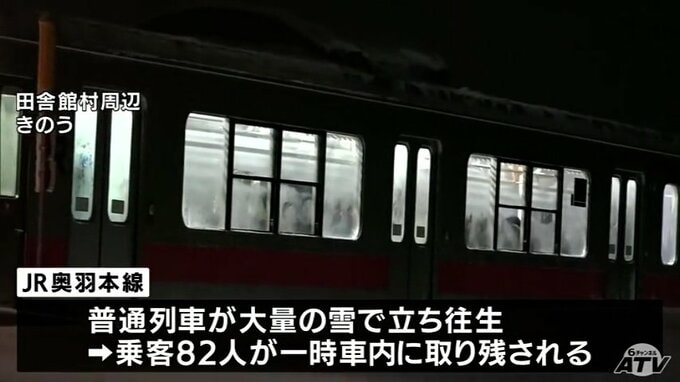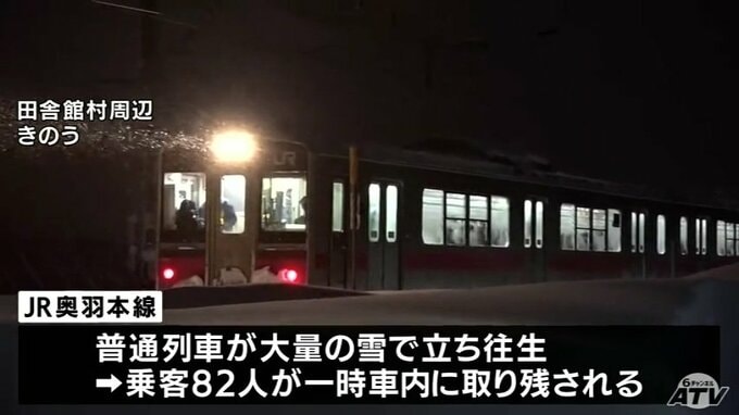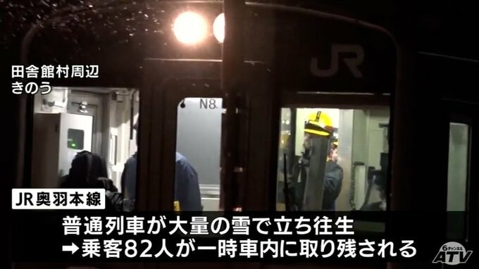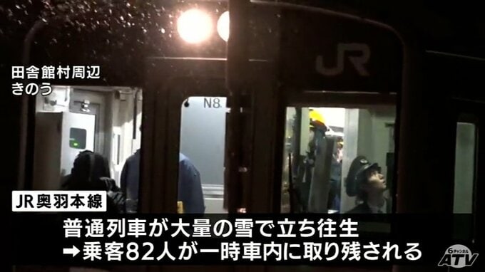 「やっと外に出られた」雪を抱え込みJR奥羽本線の列車が立ち往生 乗客82人が一時車内に取り残されるも約5時間後に運転再開 25日午後10時過ぎに近くの駅に到着 青森テレビ 2026年1月26日(月) 13:40 国内
