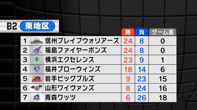 プロバスケットボールB2の福島ファイヤーボンズは、敵地で敗れ、ついに首位から後退です。