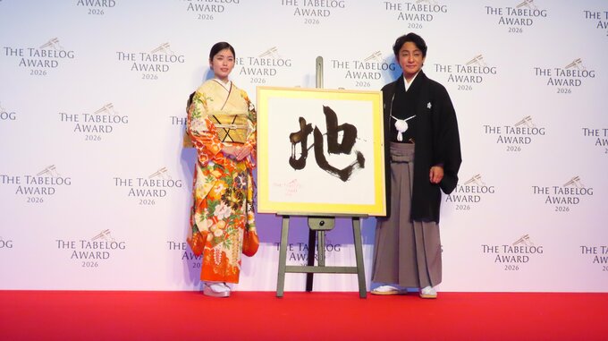 今回のイベントで愛之助さんは書き初めで「The Tabelog Award 2026」を象徴する一文字を披露。慣れた様子で「地」と書き上げると、〝いろんな土地に行って、様々な場所の地元の美味しいものだったり、地元の料理を踏まえた上で選ばせていただきました。やはり2026年もいろんな地点で、名作名品そしてお料理を楽しんでいただけるんじゃないかなと思って選ばせていただきました。〟と、語りました。