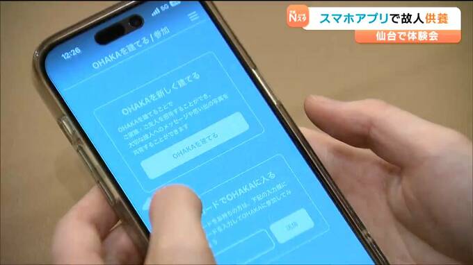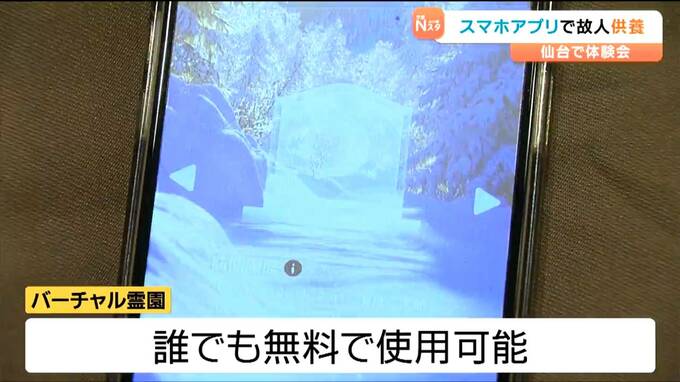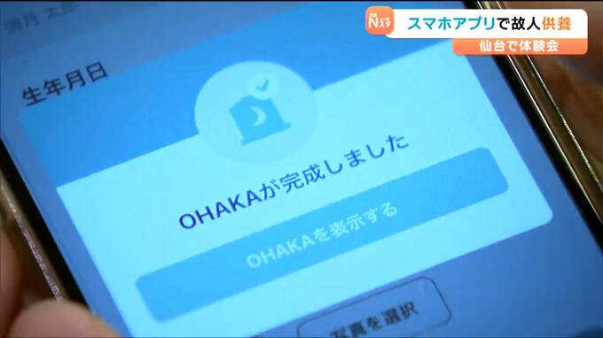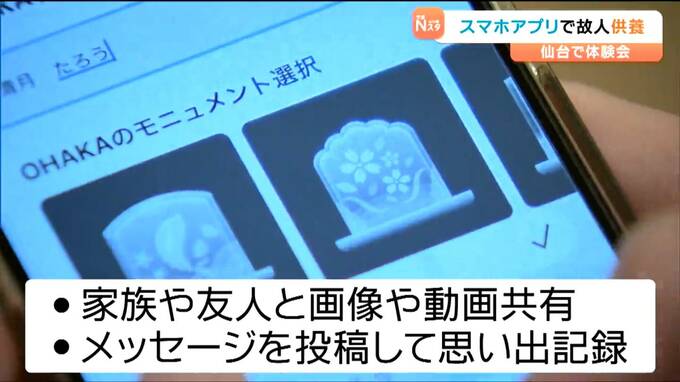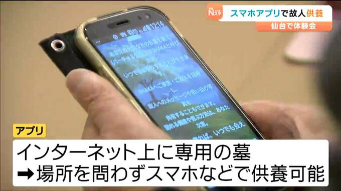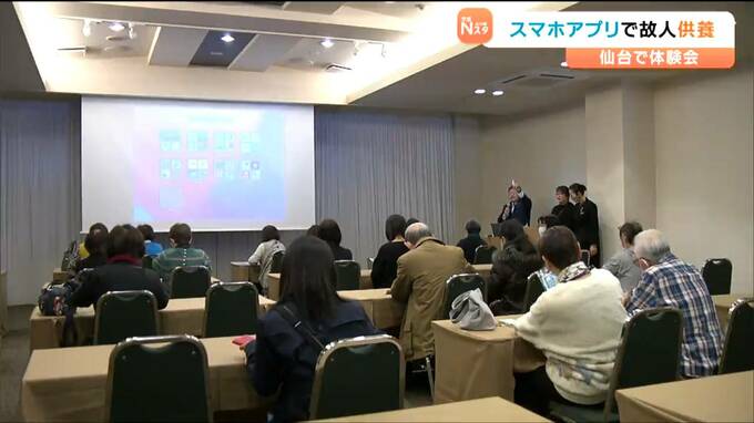 亡くなった人をスマートフォンなどで手軽に供養できるアプリが誕生し、26日に仙台で体験会が開かれました。