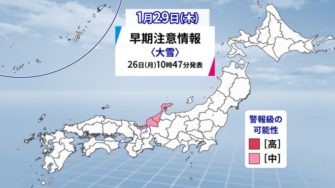 北陸・山陰では警報級の大雪となる可能性も