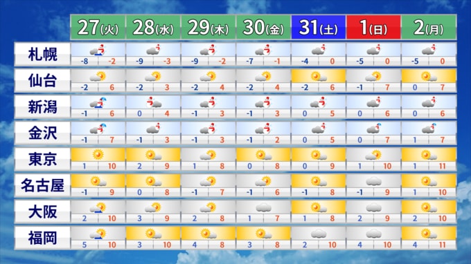 今のところ、1日~2日にかけて東京都心に雪マークはついていませんが、少しの進路の変化で、急に雪が降る予報に変わることもあります。