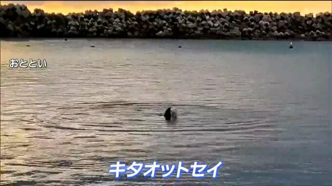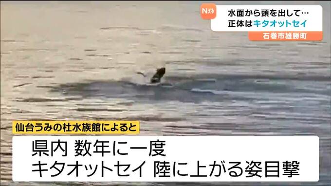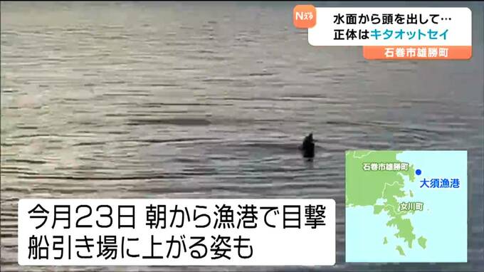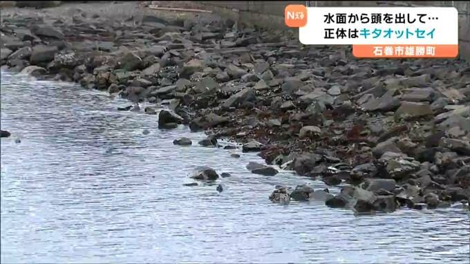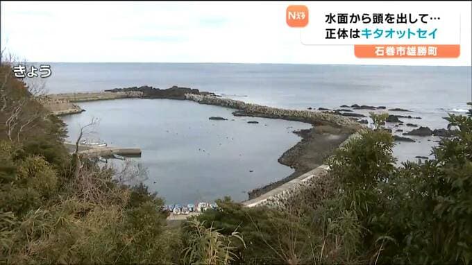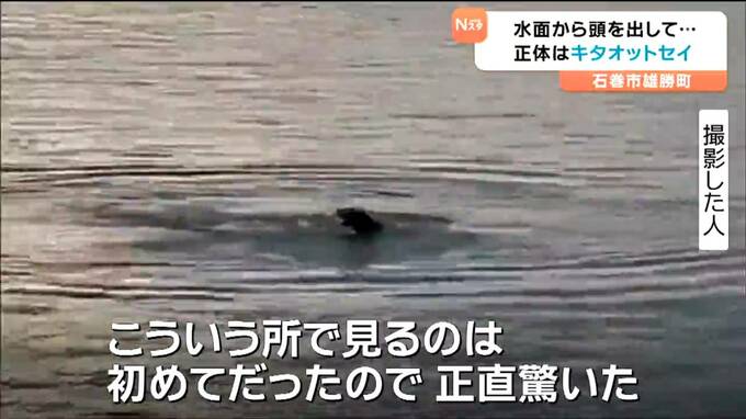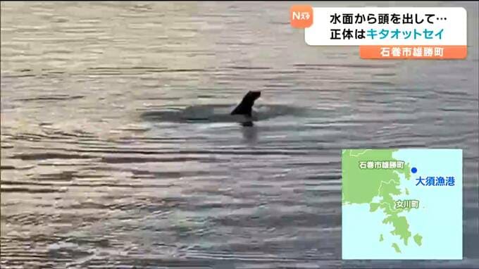 24日に宮城県石巻市雄勝の漁港である動物の泳ぐ姿が目撃され、地元の人からは驚きの声が上がっています。