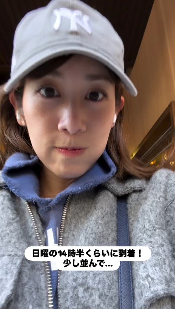 動画冒頭、中川さんは「日曜の14時半くらいに到着!! 少し並んで…」と来店時の状況をコメント。灰色のキャップを被り、青いパーカーと灰色のジャケットの古着コーディネートで入店する様子から紹介しています。