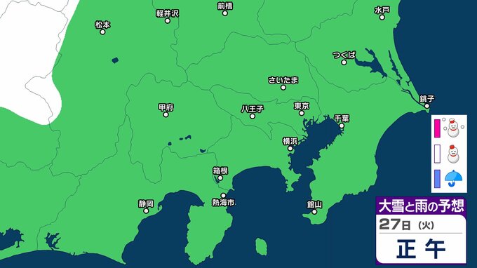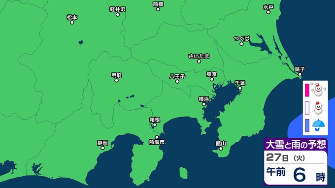 【東京の雪予想】東京・横浜・埼玉・千葉など29日(木)首都圏の広い範囲で雪雲が…26日(月)~31日(土)東京・横浜・千葉・埼玉・つくば 雪雨シミュレーション【気象庁発表/26日午後5時シミュレーション更新】 RSK山陽放送 2026年1月26日(月) 17:00 国内 天気 27日(火) ▶26日(月)~31日(土)雪雨シミュレーション