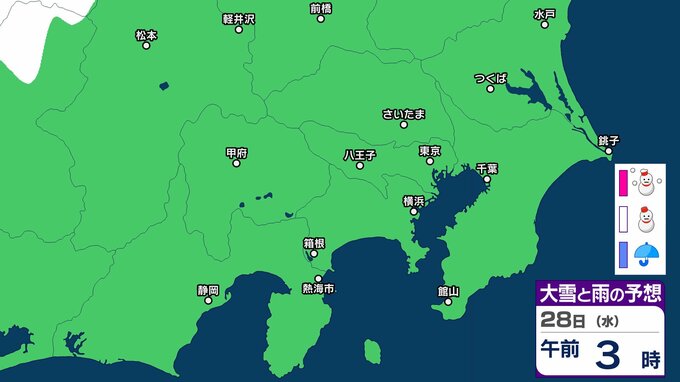 【東京の雪予想】東京・横浜・埼玉・千葉など29日(木)首都圏の広い範囲で雪雲が…26日(月)~31日(土)東京・横浜・千葉・埼玉・つくば 雪雨シミュレーション【気象庁発表/26日午後5時シミュレーション更新】 RSK山陽放送 2026年1月26日(月) 17:00 国内 天気 28日(水) ▶26日(月)~31日(土)雪雨シミュレーション