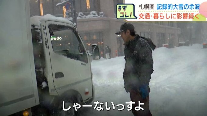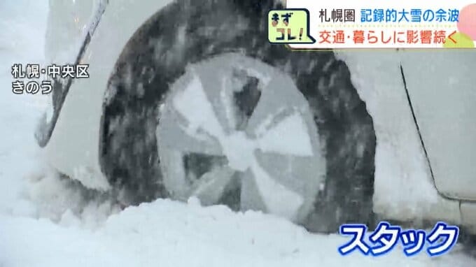 25日、札幌駅前通ではトラックや都市間バスなどが雪にはまり、動けなくなる車が続出しました。