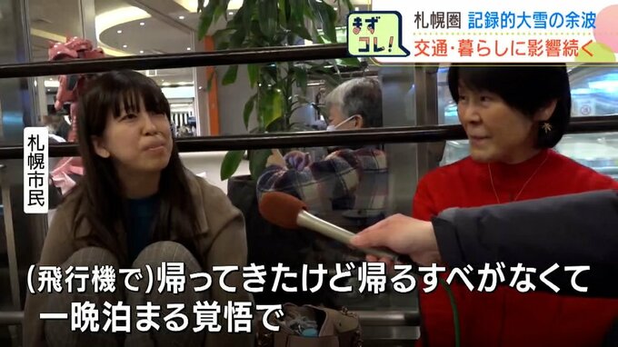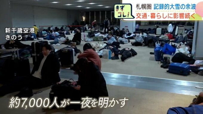 札幌中心部の地下歩行空間でも床に横になって夜を明かした人の姿が見られました。