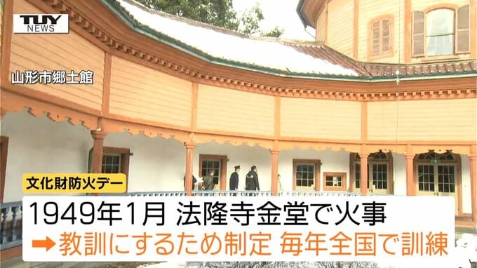 文化財防火デーは1949年1月に奈良県の法隆寺金堂で火事が起きたことを教訓にしようと制定されたもので、訓練は毎年この時期に全国で行われています。