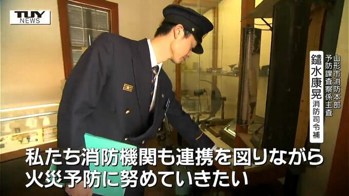 山形市消防本部 予防課査察係主査 鑓水康晃 消防司令補「貴重な文化財を火災から守り、次の世代に確実に引き継ぐため、私たち消防機関も連携を図りながら 火災予防に努めていきたい」