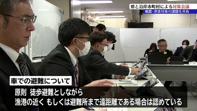 車での避難について、自治体の担当者からは、原則、徒歩避難としながら漁港の近くや避難所まで遠距離の場合に限って認めているなどの意見が出されました。