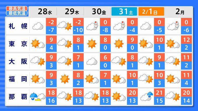 1月29日(木)~2月2日(月)までの天気について、気象庁が26日に発表した最新の情報によりますと…