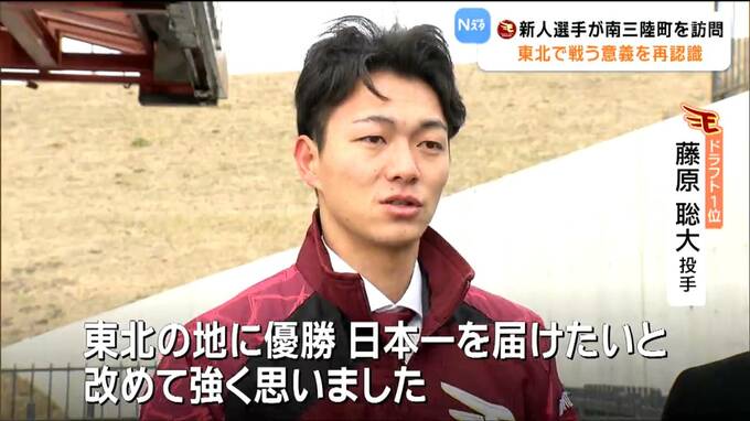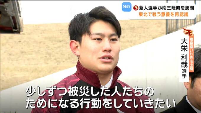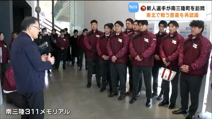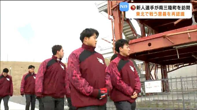 楽天イーグルスの新人選手たちが東日本大震災の被災地、宮城県南三陸町を訪れ、震災を経験した球団として果たすべき役割を考えました。