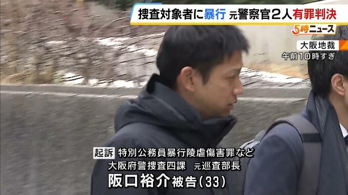 家宅捜索の際、捜査対象の男性らに暴行を加えたとして元警察官2人に有罪判決です。 弁護人とともに伏し目がちに裁判所へと入る男。大阪府警・捜査四課の元巡査部長・阪口裕介被告(33)です。 阪口被告とその…
