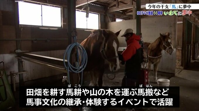 この馬たちは田畑を耕す馬耕(ばこう)や山の木を運ぶ馬搬(ばはん)など、県内に伝わる馬事文化の継承や体験をするイベントで活躍しています。