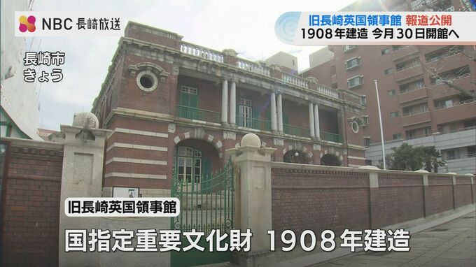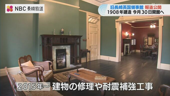 老朽化のため、11年前から行なわれていた長崎市の旧長崎英国領事館の保存工事が去年完了し、26日、報道関係者に公開されました。