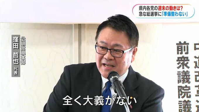 (公明党県本部 窪田哲也 代表)「今回の選挙、全く大義がない。相手がけんかを仕掛けてきた以上、受けて立たなければいけない。中道の候補者、必ず勝利しよう」