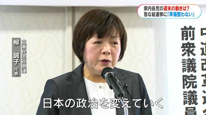(立憲民主党県連 柳誠子 代表)「日本の政治を変えていく。そのチャンスが来た。本当に時間がない中での選挙となるが、私たちが力をあわせれば実現可能。みんなで力をあわせよう」
