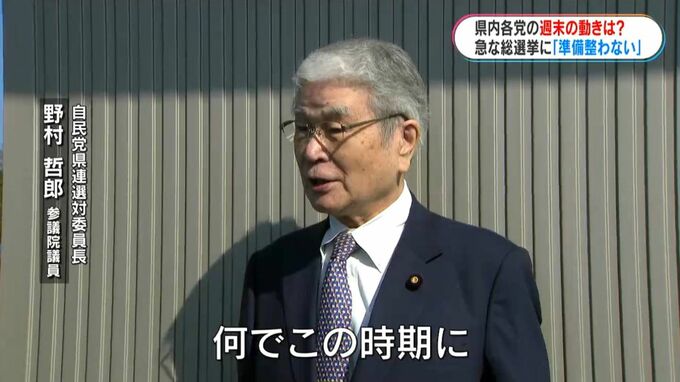 自民党県連の選挙戦を仕切る野村参議院議員。解散から2日たったきのう25日、4区の前職・森山さんの事務所開きに駆けつけました。陣営の士気は高まっていますが、急な総選挙に心境は複雑です。