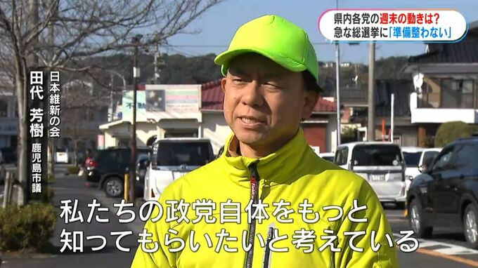 県内に党の組織はありません。唯一の所属議員である鹿児島市の田代市議はきのう25日、一人で辻立ちを行いました。田代市議は維新の比例票獲得を目指し鹿児島市で活動します。