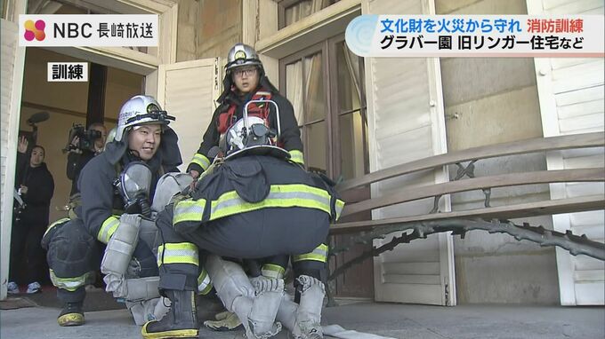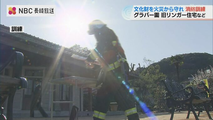 長崎市消防局は文化財防火デーに合わせて毎年、市内の文化財を対象に消防訓練を行っていて、グラバー園で行われるのは5年ぶりです。