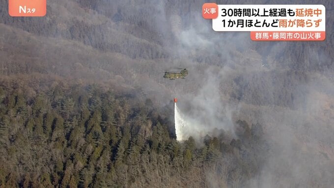 きのう、群馬県藤岡市で起きた山林火災は30時間以上たった今も延焼中で、鎮火のめどはたっていません。きのう午前8時ごろ、藤岡市上日野の山林から出火した山火事。山中の廃屋1棟が焼けた以外、家屋や人への被害は…