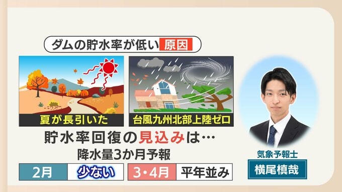 福岡県のダムの貯水率が低下している原因は、気象予報士の横尾槙哉さんによると、