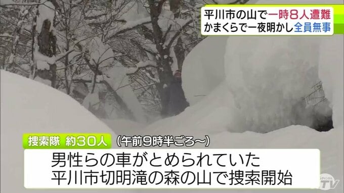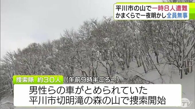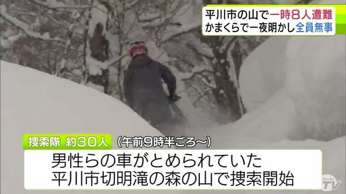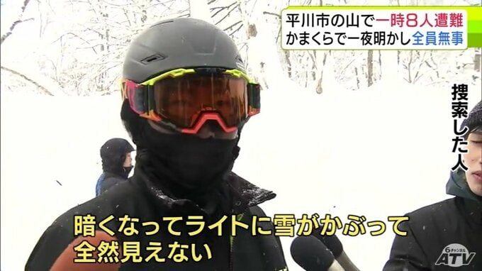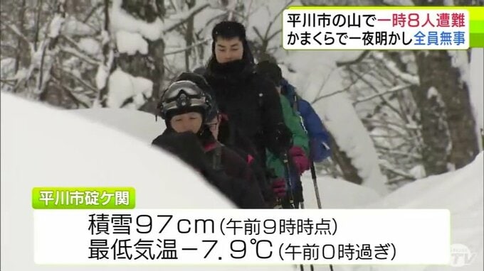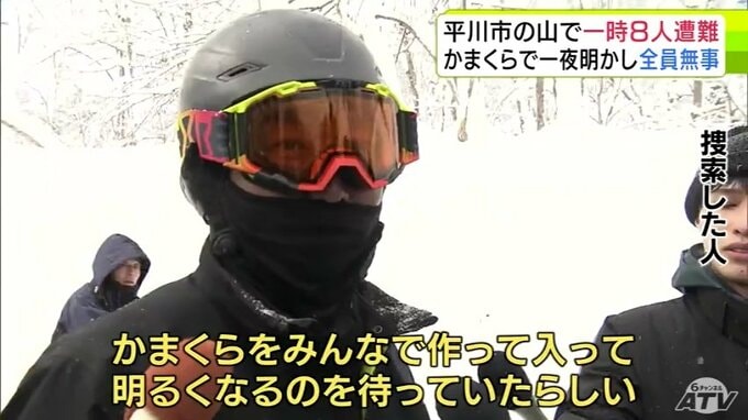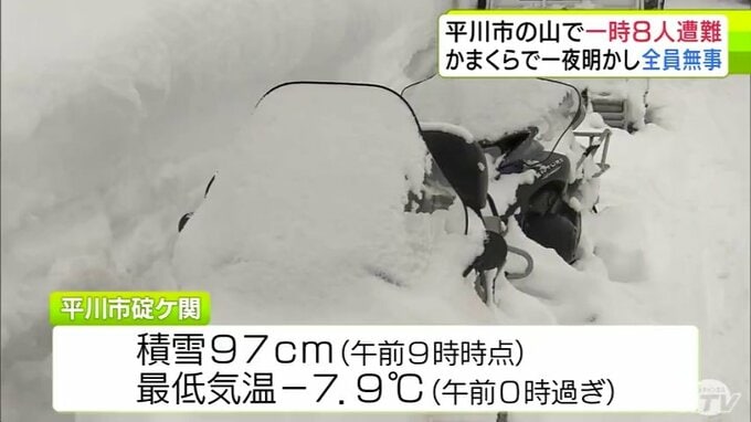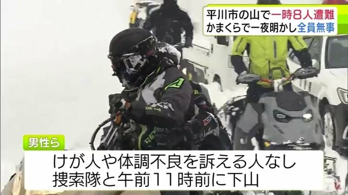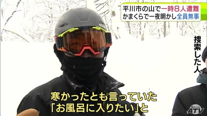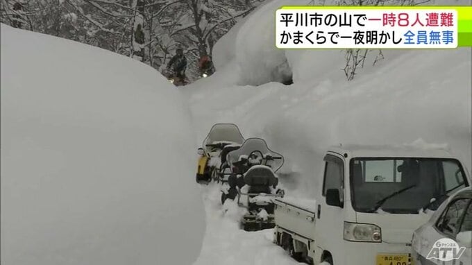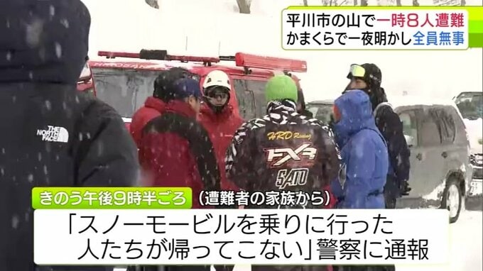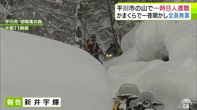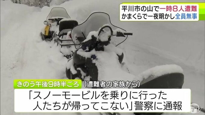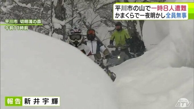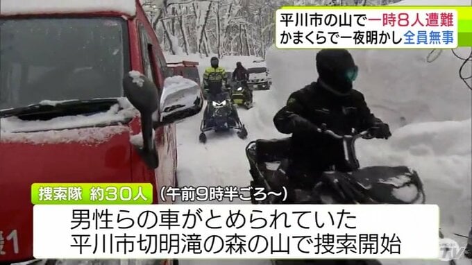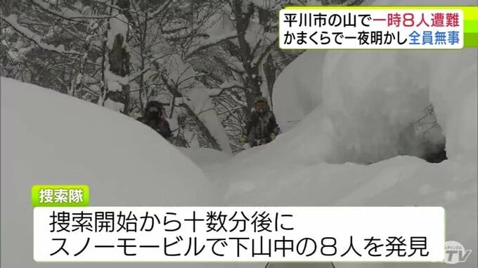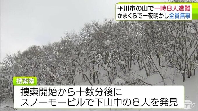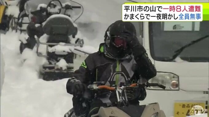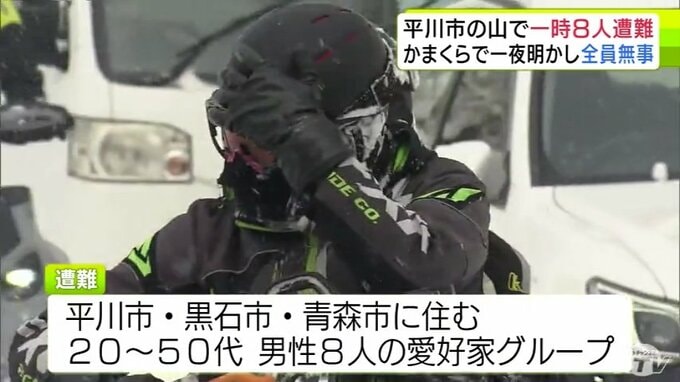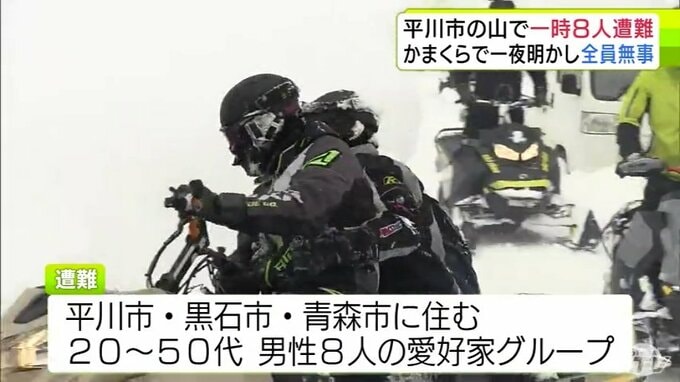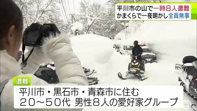 遭難の20〜50代の男性8人のスノーモービル愛好家グループ 「かまくら」作り一夜を明かし26日午前に無事全員下山 「『寒かった』と言っていた。『お風呂に入りたい』と」と捜索した人 青森県平川市 2時間前