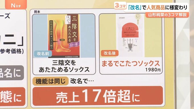 岡本の「三陰交をあたためるソックス」も、改名で売り上げがアップしました。