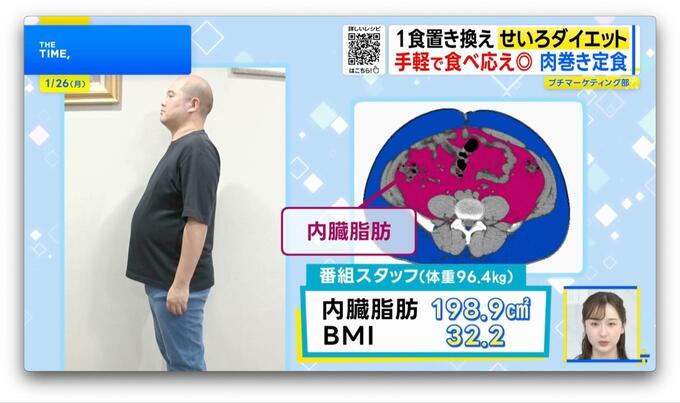 ▼番組スタッフ:体重96.4kg・内臓脂肪198.9㎠・BMI32.2