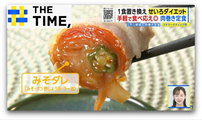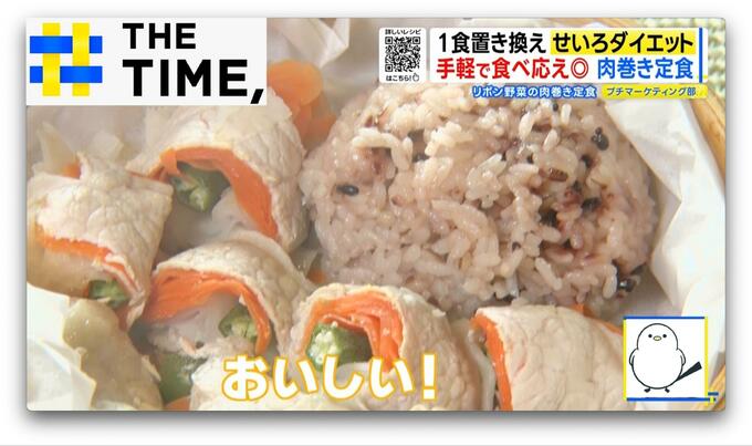 1品目は、断面がカラフルでかわいい【リボン野菜の肉巻き定食】