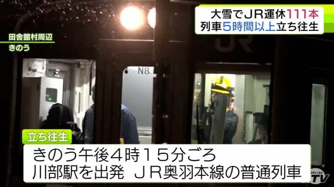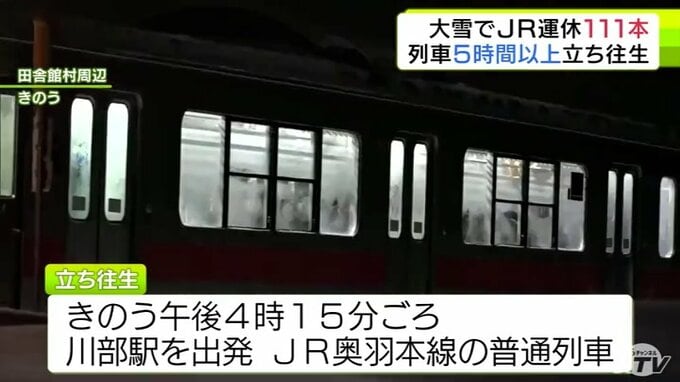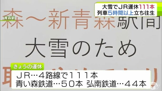 大雪の影響で鉄道の運休相次ぐ JRは4路線で100本以上が運休 25日には雪を抱え込みJR奥羽本線の列車が立ち往生 一時乗客82人が車内に取り残されるも約5時間後に運転再開 青森テレビ 2026年1月26日(月) 21:15 国内